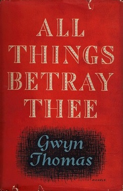 Description All Things Betray Thee, by Gwyn Thomas, is a novel of early industrialism in South Wales. It was first published in 1949, and was republished in 1986, with an introduction by Raymond Williams. Parthian Books: All Things Betray Thee. Accessed 30 Sept 2014Set in 1835, this work is significantly different from most of Gwyn Thomas's work. It is both a personal story and an account of the origin of the industrialised and mostly English-speaking society of the South Wales Valleys.