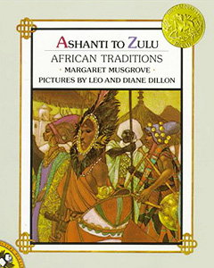 Description Ashanti to Zulu: African Traditions is a 1976 children's book written by Margaret Musgrove and illustrated by Leo and Diane Dillon. It was Musgrove's first book, but the Dillons were experienced artists and this book won them the second of their two consecutive Caldecott Medals.American Library Association: Caldecott Medal Winners, 1938 - Present. URL accessed 27 May 2009. (The first was for Why Mosquitoes Buzz in People's Ears: A West African Tale.)The book features twenty-six illustrations of native African peoples, each accompanied by a short vignette describing one of the customs of that particular people.Peoples included in the book:AshantiBauleChaggaDogonEweFantiGaHausaIkomaJieKungLoziMasaiNdakaOuadaiPondoQuimbandeRendilleSothoTuaregUgeVaiWageniaXhosaYorubaZulu
