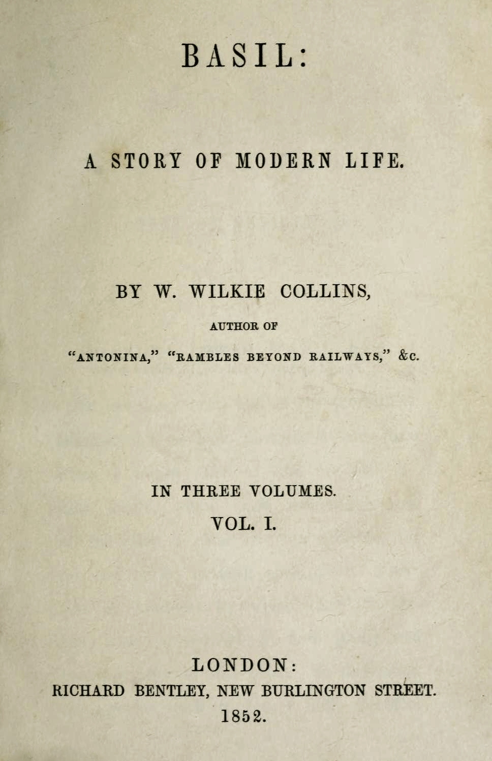 Basil (1852) is the second novel written by British author Wilkie Collins, after Antonina.