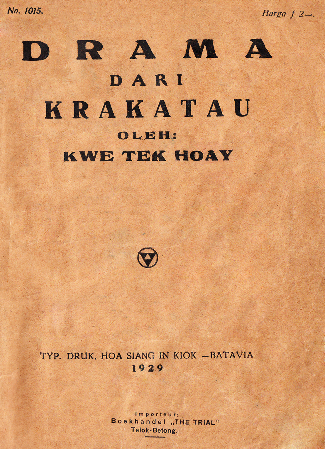 Description Drama dari Krakatau (; Drama of Krakatoa) is a 1929 vernacular Malay novel written by Kwee Tek Hoay. Inspired by Edward Bulwer-Lytton's 1834 novel The Last Days of Pompeii and the 1883 eruption of Krakatoa, the sixteen-chapter book centres on two families in 1920s Batam that are unknowingly tied together by siblings who were separated in 1883. The brother becomes a political figure, while the sister marries a Baduy priest-king. Ultimately these families are reunited by the wedding of their children, after which the priest sacrifices himself to calm a stirring Krakatoa.First published as a serial in Kwee's magazine Panorama between 7 April and 22 December 1928, Drama dari Krakatau was written over a period of two months after the author was asked to prepare a "sensational" story for a film. Before the final instalment had been published, the novel had already been adapted for the stage. Although Kwee was known as a realist and researched the volcano before writing, Drama dari Krakatau is replete with mysticism. Thematic analyses have focused on the depiction of indigenous cultures by Kwee (himself ethnic Chinese), as well as geography and nationalism. As with other works of Chinese Malay literature, the book is not considered part of the Indonesian literary canon.
