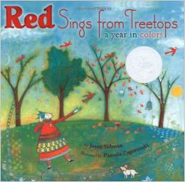 Description Red Sings from Treetops: A Year in Colors is a children's picture book written by American children's author Joyce Sidman, illustrated by Pamela Zagarenski, and published by Houghton Mifflin Books for Children. The book follows the changes of the seasons throughout the year by looking at colors.Joyce Sidman, and Pamela Zagarenski, Red Sings from Treetops: A Year in Colors, (Houghton Mifflin Books for Children, ).The book was an Honor book for the Caldecott MedalCaldecott Honors and won the Claudia Lewis Poetry AwardClaudia Lewis Poetry Award in 2010. Other awards and honors Red Sings from Treetops has earned include the Minnesota Book Award, Cybils Poetry Award, the Bulletin Blue Ribbon and Booklist Editor's Choice.Sidman's website