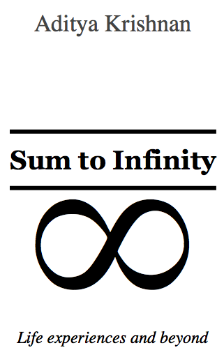 Sum to Infinity is a 2014 travel novel by Indian author Aditya Krishnan (Hindi: अदित्या क्रिशन्न; born 24 June 1997). The book was released online via Amazon.com on 24 July 2014, two years after his first novel Starters with Mocktales.The book was
