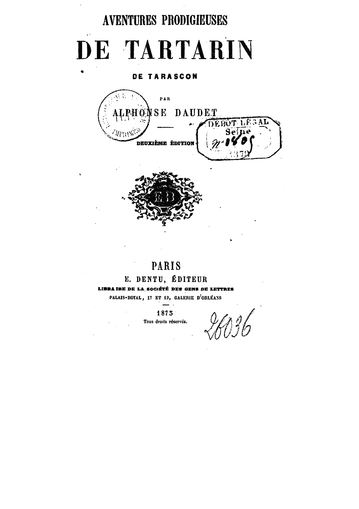 Description Tartarin of Tarascon () is an 1872 novel written by the French author Alphonse Daudet.