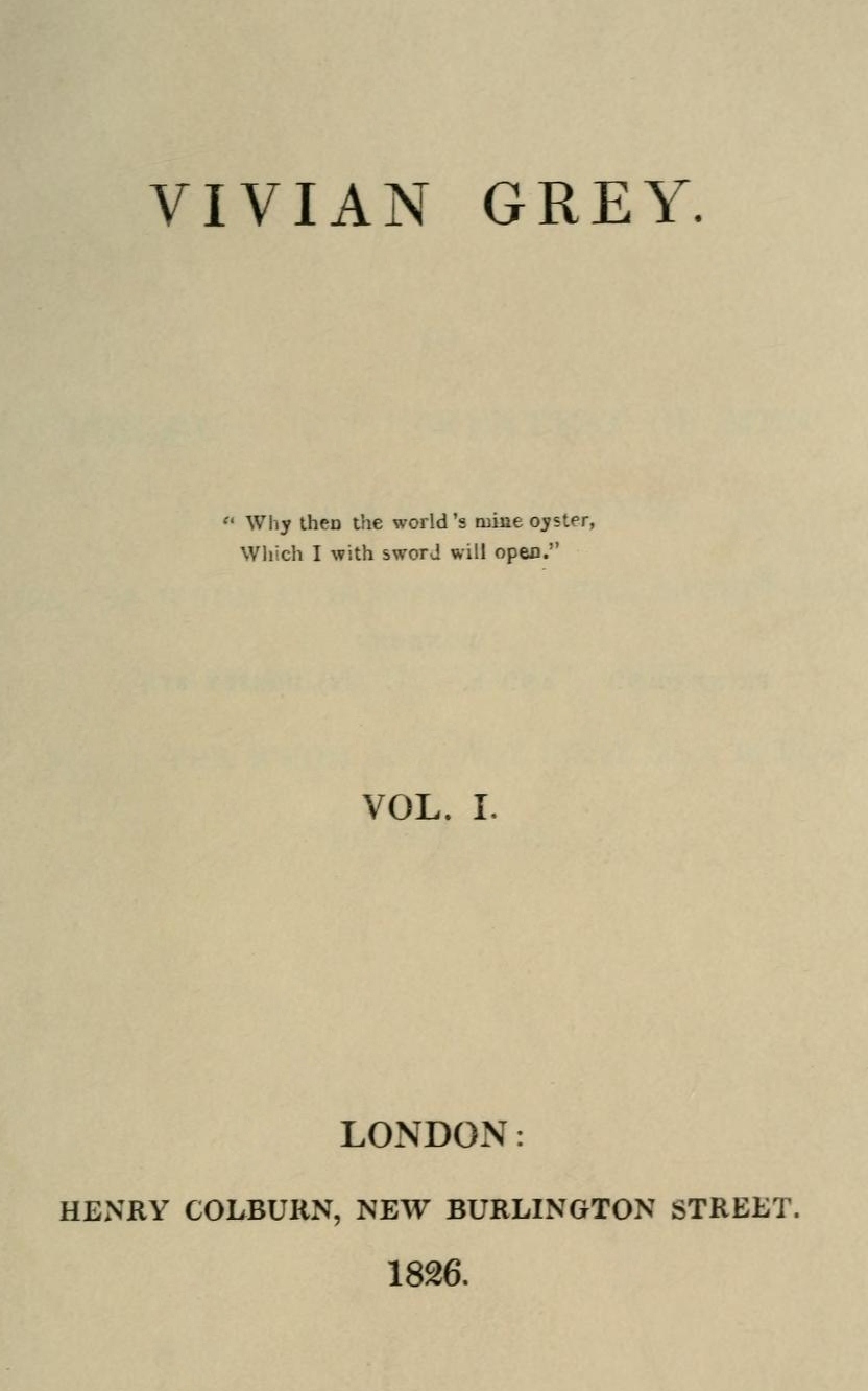 Description Vivian Grey is Benjamin Disraeli's first novel, published by Henry Colburn in 1826. In 1827, a second volume was published. Originally published anonymously, ostensibly by a so-called "man of fashion," part 1 caused a considerable sensation in London society. Contemporary reviewers, suspicious of the numerous solecisms contained within the text, eventually identified the young Disraeli (who did not move in high society) as the author. Disraeli wrote a sequel to Vivian Grey, and this second part is Books 5–8 of the total work. The form in which Vivian Grey is published now is the revised 1853 edition, which was severely expurgated and, according to critic Wendy Burton, lost much of the charm and freshness of the 1826 edition.Wendy Burton, The Mask of Vivian Grey, (Kingston, 1976), 2. The book is a frequent touchstone for discussions of Disraeli's political and literary career.